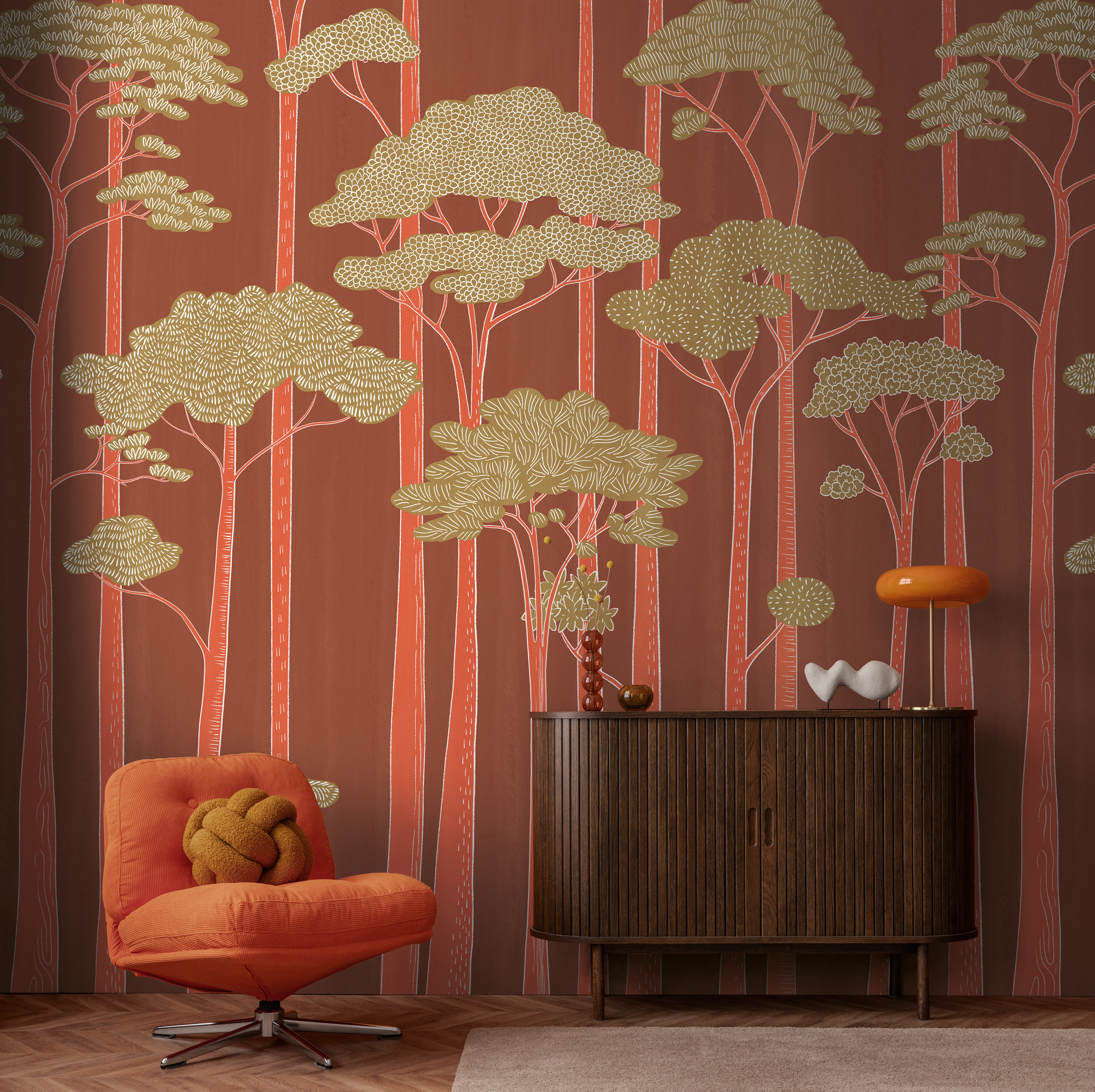 -79222-8 Панно AS Creation 371*280, Лесной ритм на красном