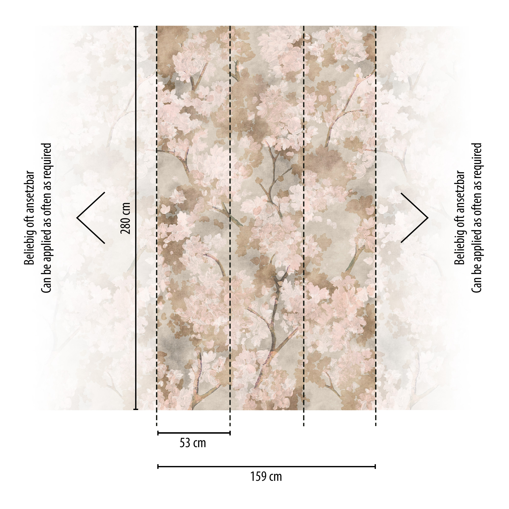 • 79248-4 Панно AS Creation 159*280, Ветвь бежево-розовая